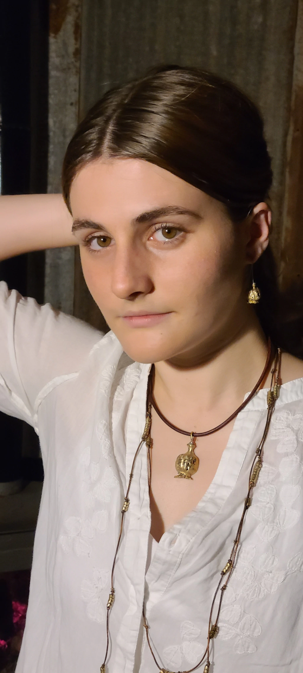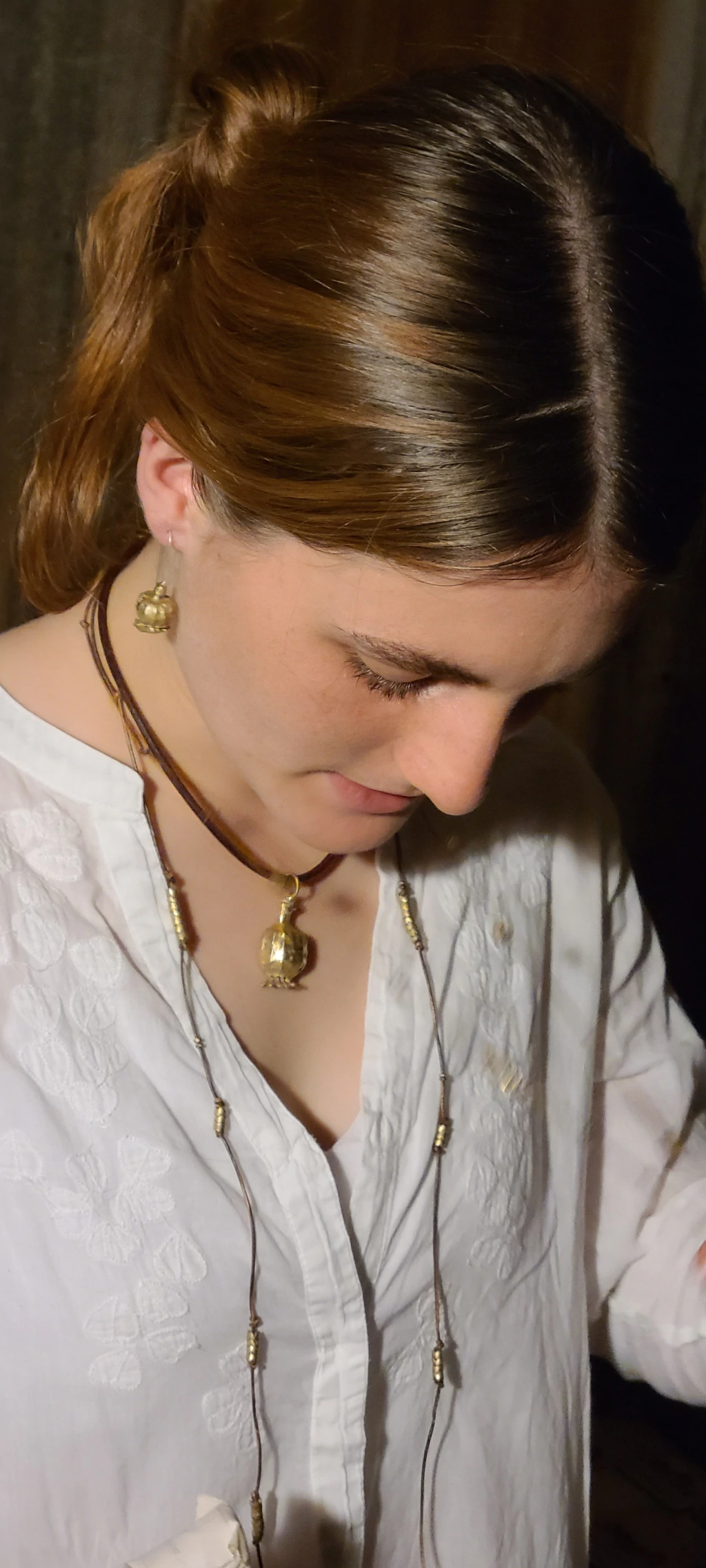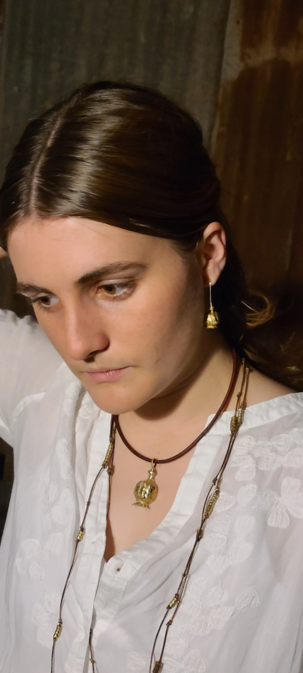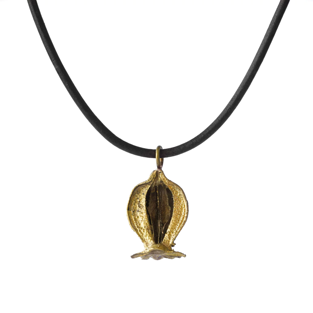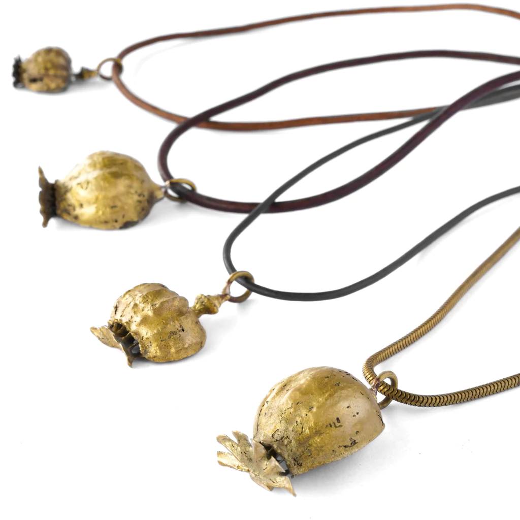 Dije hecho de media cápsula de amapola (donde lleva sus semillas).
