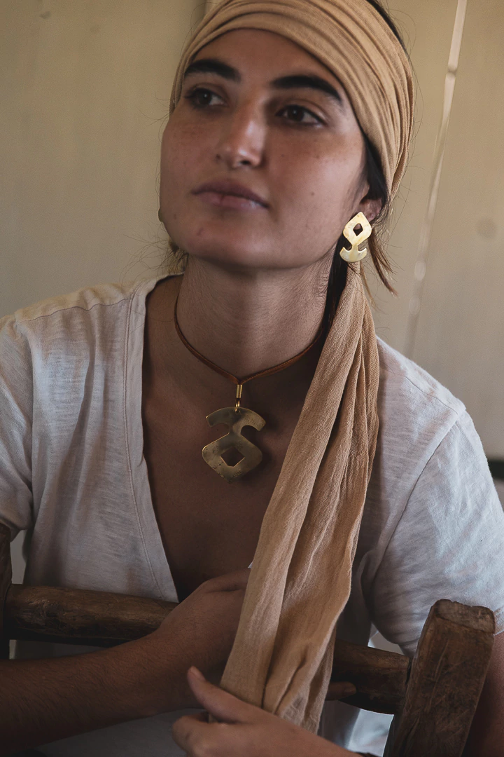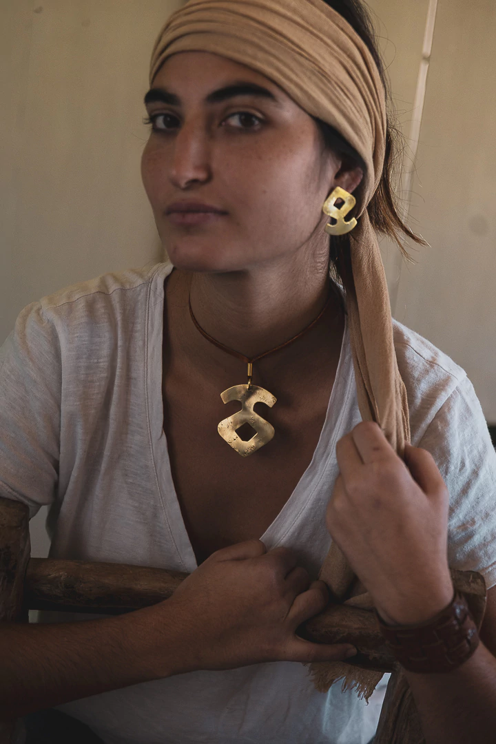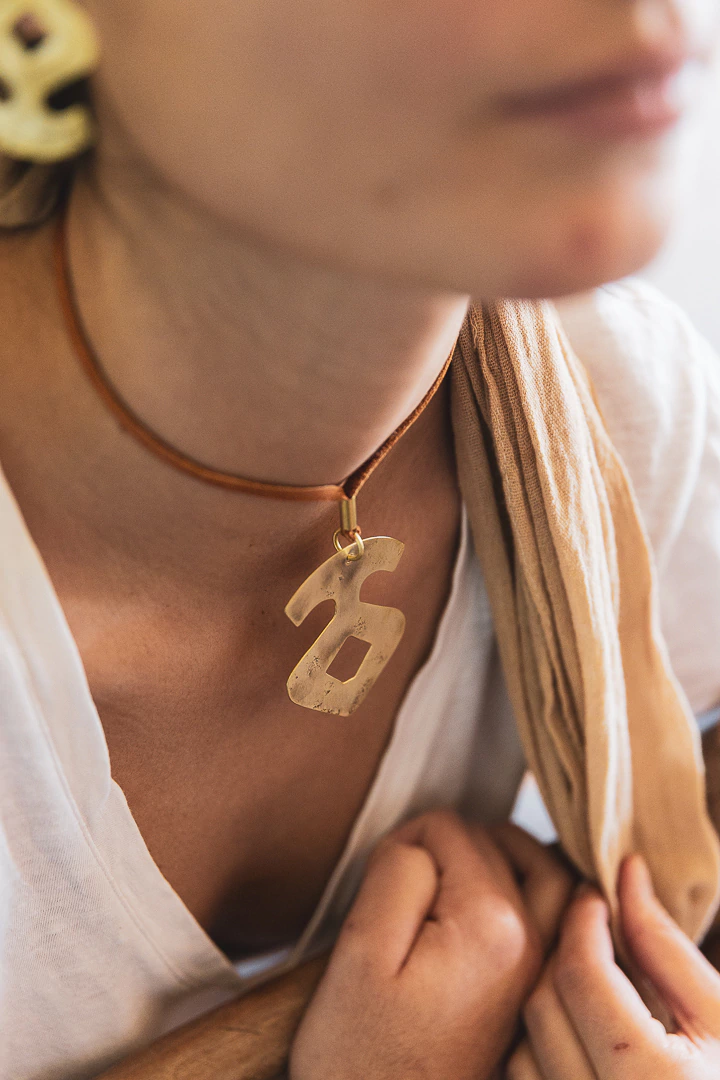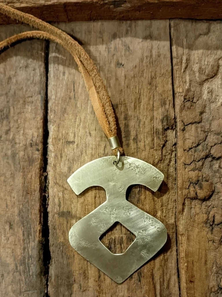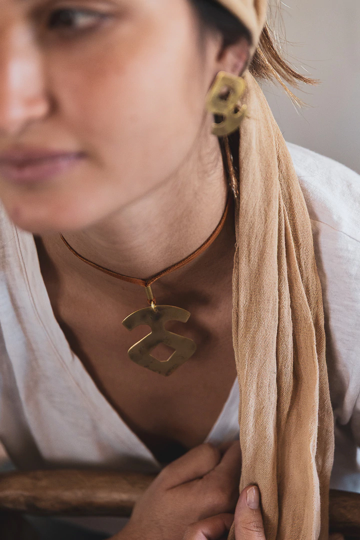 Collar etnico. Cordon de cuero regulable y metal añejado. Disponible en alpaca o bronce.