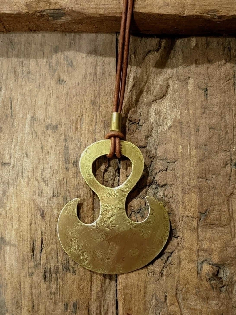 Collar etnico hecho a mano. Cordon de cuero regulable y metal añejado. Disponible en alpaca o bronce.